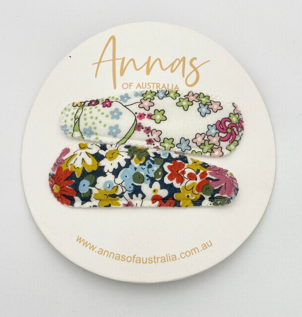 Perfectly miss matched fabrics to make a set of cute hair clips. Perfect for keeping those wispy hairs out of the way or just to add a bit of flare to your hair style.